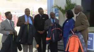 The men of Sigma Pi Phi Fraternity presented 50 new winter coats to the Albany Salvation Army on Wednesday.