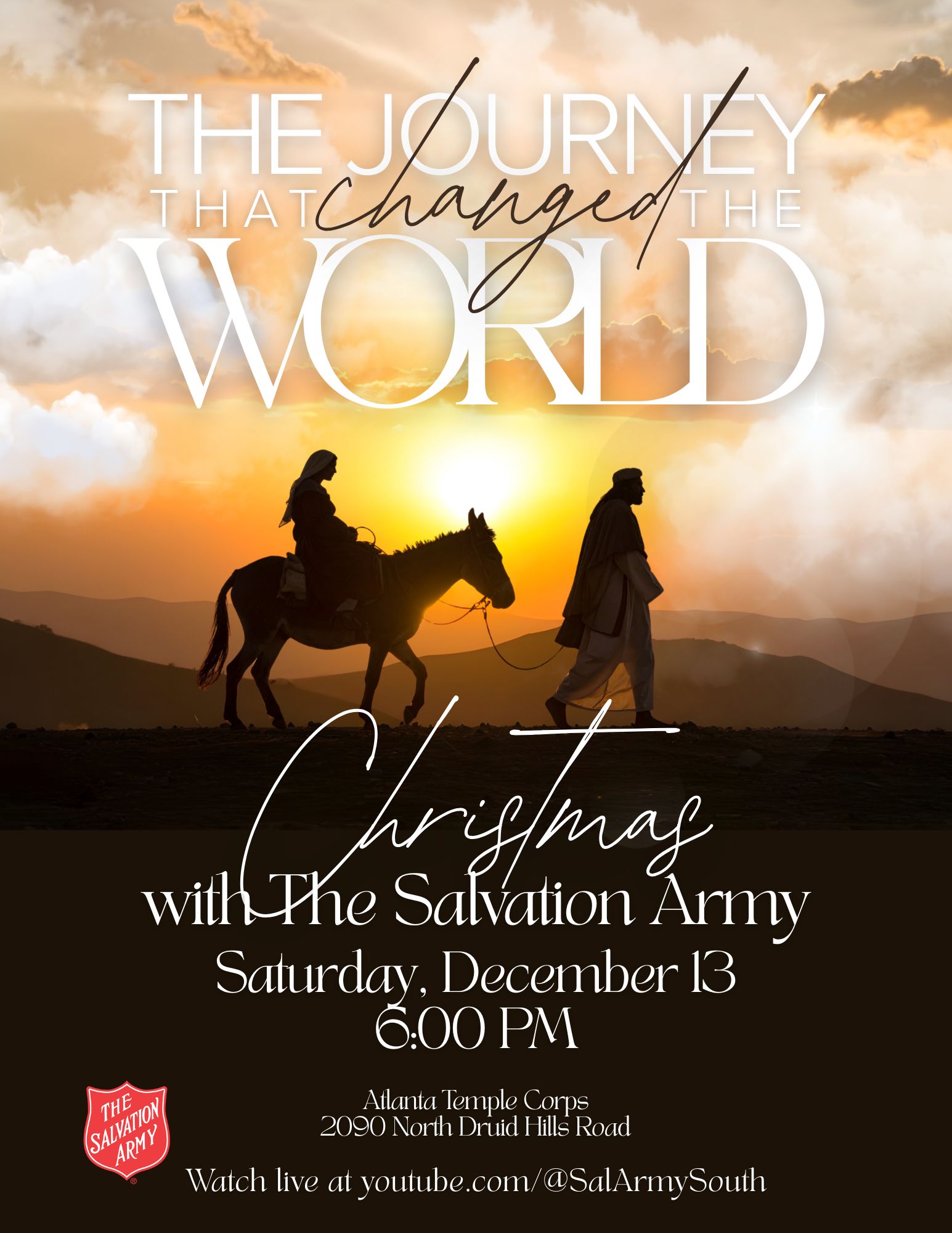 Celebrate The Journey That Changed the World at Christmas with The Salvation Army! Enjoy an evening of meaningful worship through music and creative arts from Atlanta-area groups, along with a heartfelt Christmas message from Commissioner Kelly Igleheart. Come share in the joy and meaning of this Advent season.