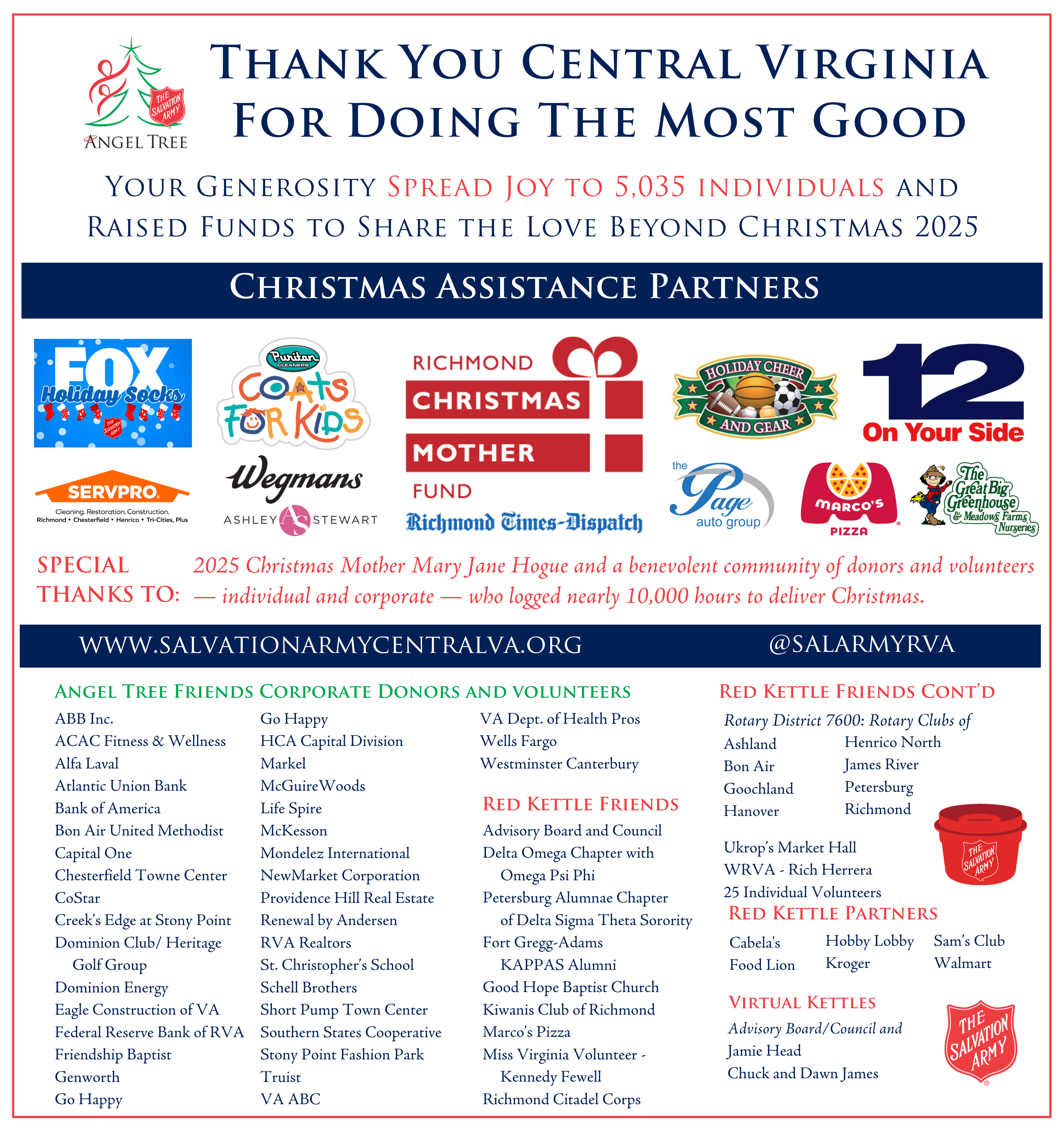 Following a final internal reconciliation, the confirmed total served through Angel Tree this season is 5,035—about an 8% increase over last year.