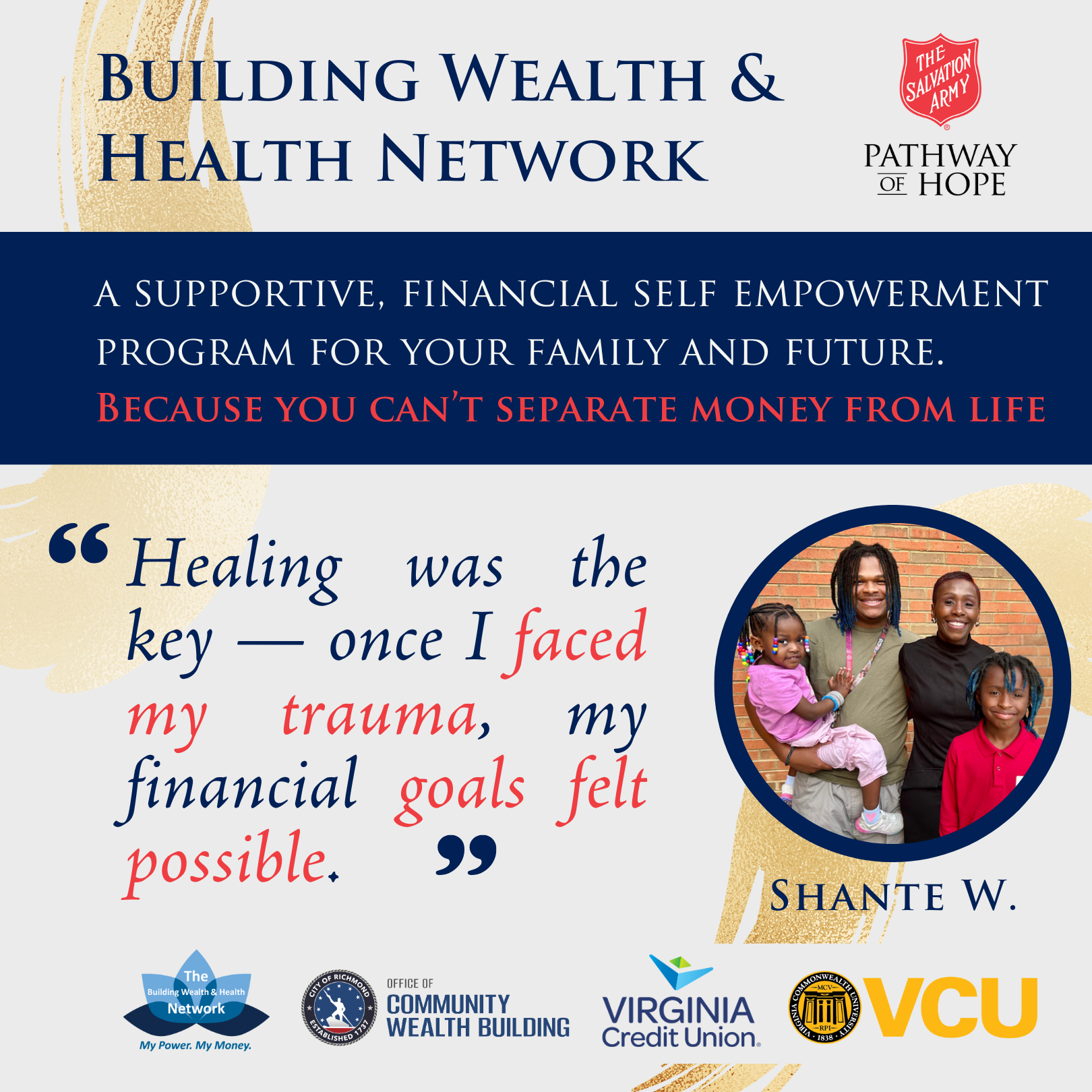 Shante’s experience reflects what the Building Wealth and Health Network is designed to do: create space for people to learn, reflect, and rebuild — financially, emotionally, and communally. Shared struggles became a bridge, not a barrier. Progress came through both practical tools and the courage to look back, name what happened, and move forward.