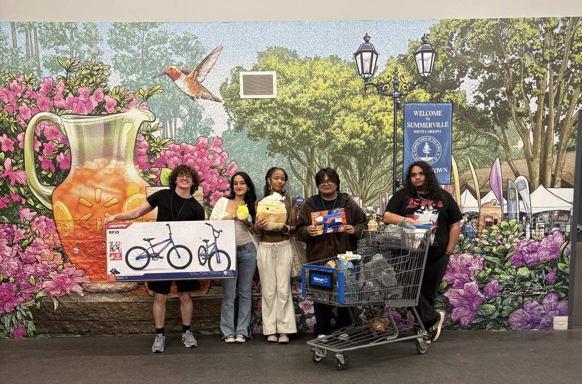 Caden Sellers, far left, and friends who helped him purchase gifts for three area children, with money they raised for the Salvation Army of Greater Charlotte’s Angel Tree program. From left, Sellers, Marina Moncada, Carmen “Kaleb” Tate, Mark Halagao and Logan Johnson. Sellers, Halagao and Johnson worked together to raise money for the program. Courtesy Caden Sellers