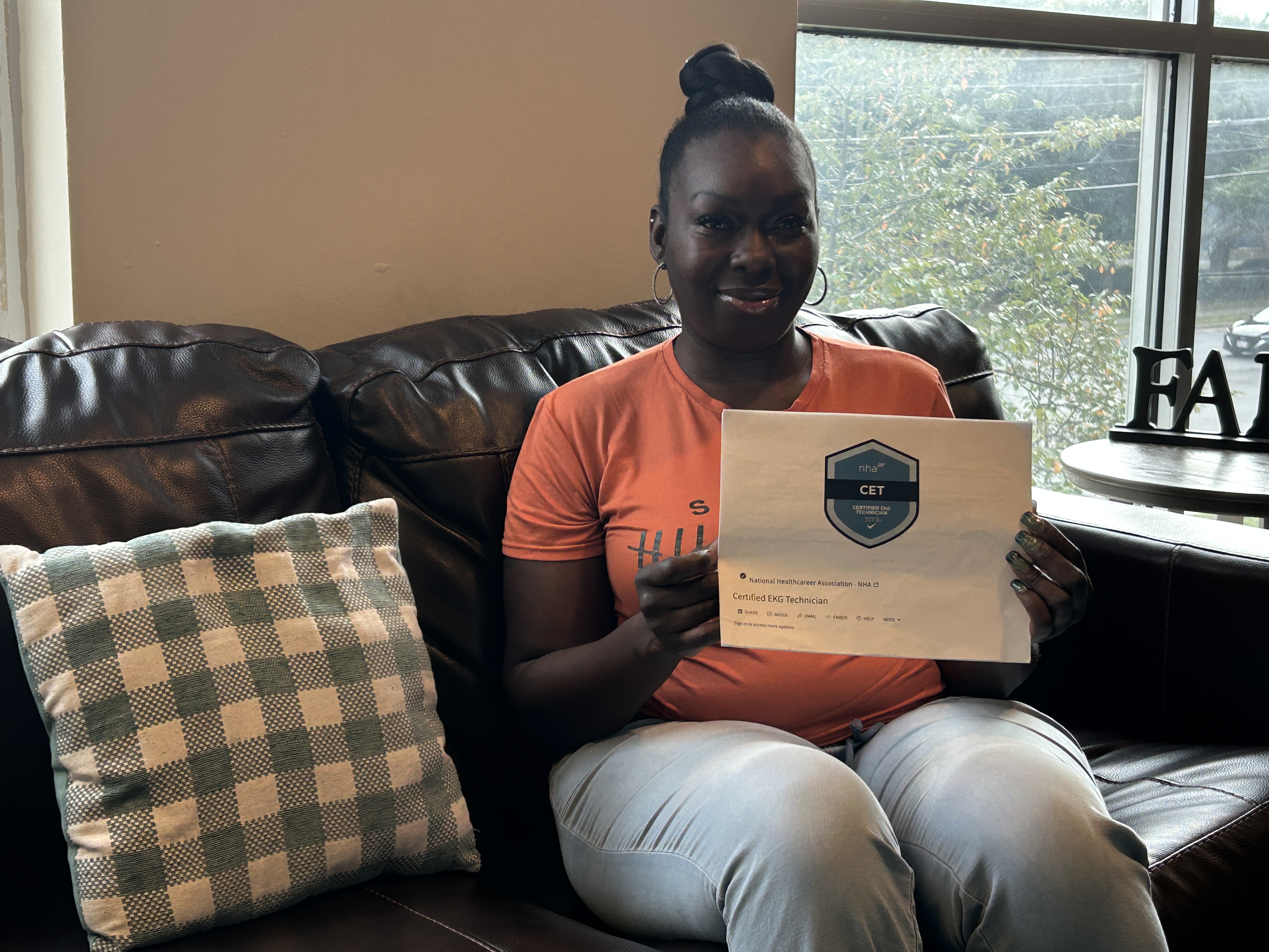electrocardiogram technician (EKG) certification and plans to take classes to become a Certified Medical Assistant (CMA). Her oldest child, now a high school graduate, is following in their mother's footsteps, entering the medical field as well.