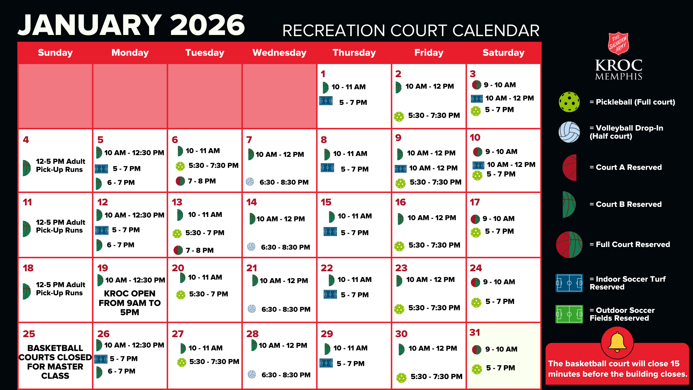 We’ve updated our schedule to offer evening sessions—even on weekends—making it easier than ever to join the fun! Is your pickleball partner not a Kroc Member yet? No problem, they can join in on the fun for only $3. Don’t have a partner? We still encourage you to come out and meet fellow players! It’s the perfect chance to learn a new game, get a great workout, and experience the vibrant community that only The Kroc can offer.