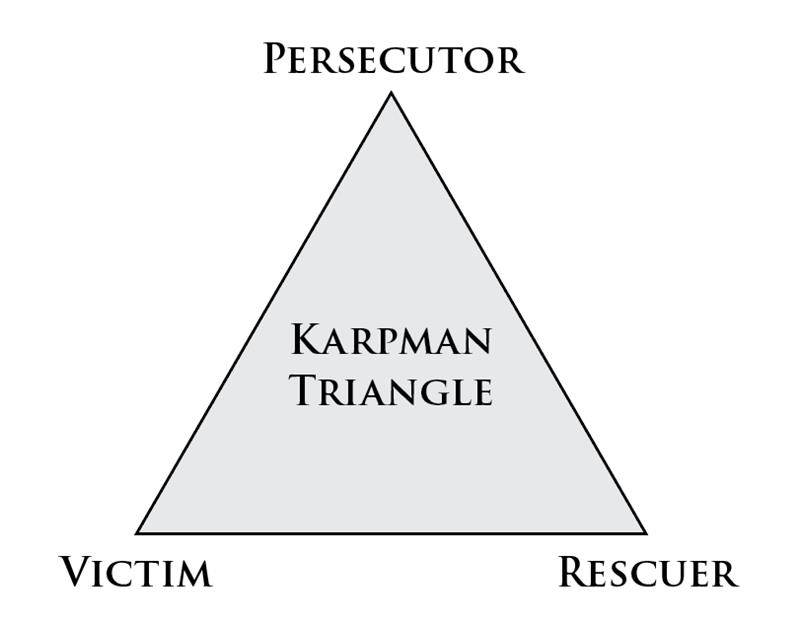 When I worked in the Adult Rehabilitation Center (ARC), I saw the Karpman Triangle playing out every day. We had beneficiaries who were experts at playing the different roles to avoid responsibility for their actions and getting their way. The single most dangerous thing to do is to take on the rescuer role with an addict. They learn very quickly that if they want you to do something, all they have to do is play the victim and you will give them whatever they want. The beneficiaries in the ARC are legitimately suffering, but the key to fixing their situation is them taking responsibility for their own actions and making the needed changes in their life. In this situation, the rescuer protecting the addict from the consequences of their actions actually makes things worse, taking on the responsibility for meeting the addict’s needs so they do not have to change their ways and get sober.