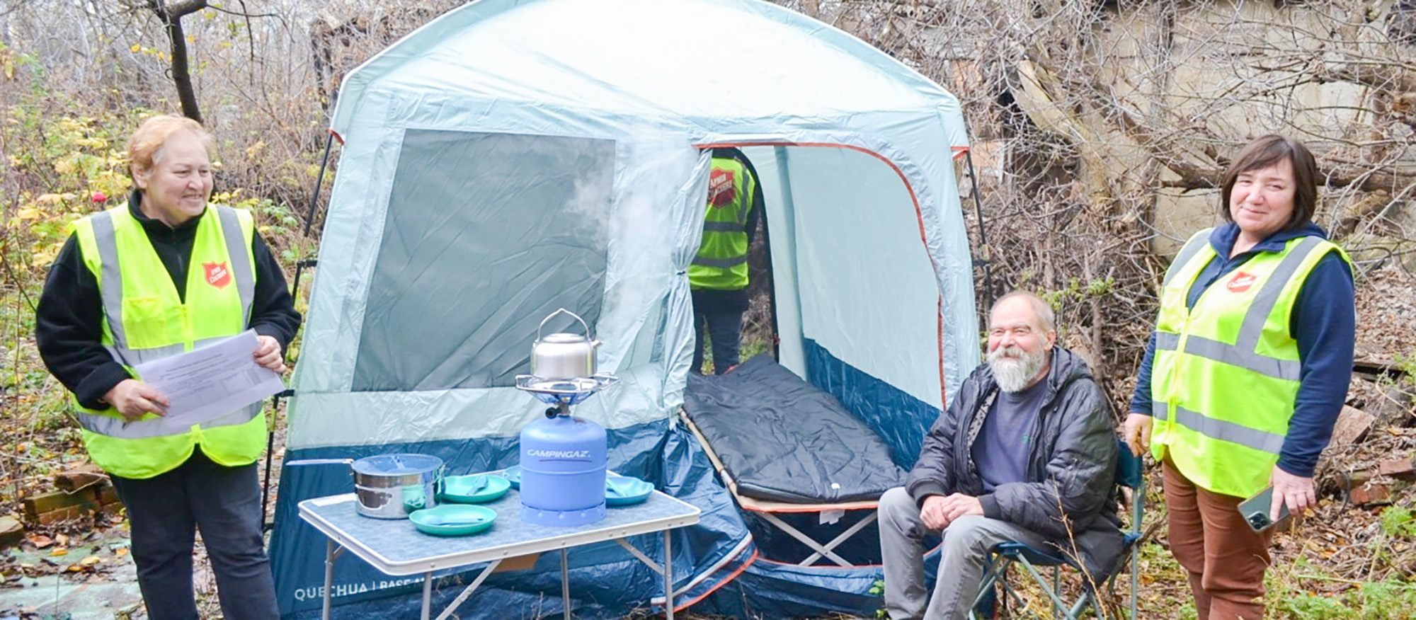 Yuri is a citizen of Kharkiv whose family home, built in 1933, is now destroyed by shelling. He was able to find help through The Salvation Army, which provided humanitarian aid in the form of a tent, two beds, two sleeping bags, two tables, two chairs, a gas cylinder with a stove, a kettle, and necessary utensils. Yuri said, “Thank you for coming here to us and bringing such wonderful gifts! Now, I have a place to rest while I renovate my house. I have a place to cook and even sleep. Your kindness gives me hope and faith in the future because we are not alone and the world supports us. Thank you!”